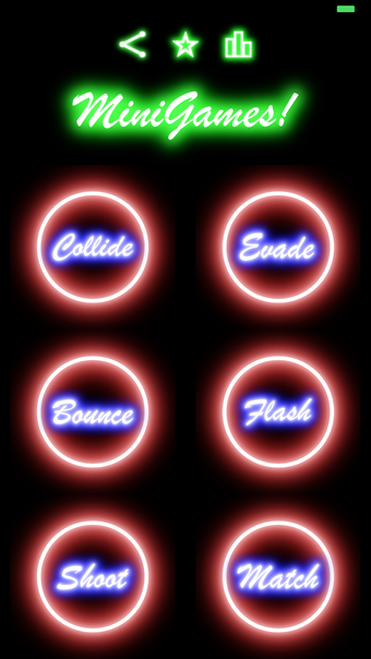 Collide ต้องการให้คุณแตะที่หน้าจอเมื่อจานสองใบตัดกัน ได้คะแนนสำหรับการชนกันที่ประสบความสำเร็จ ใน Match คุณต้องจับคู่จานด้านล่างกับสีที่ถูกต้องในแถวของจานที่ตก โดยความเร็วเพิ่มขึ้นเมื่อเกมดำเนินไป Shoot ท้าทายคุณที่จะแตะหน้าจออย่างต่อเนื่องเพื่อยิงศัตรูที่เข้ามาและป้องกันไม่ให้พวกเขาผ่านไป